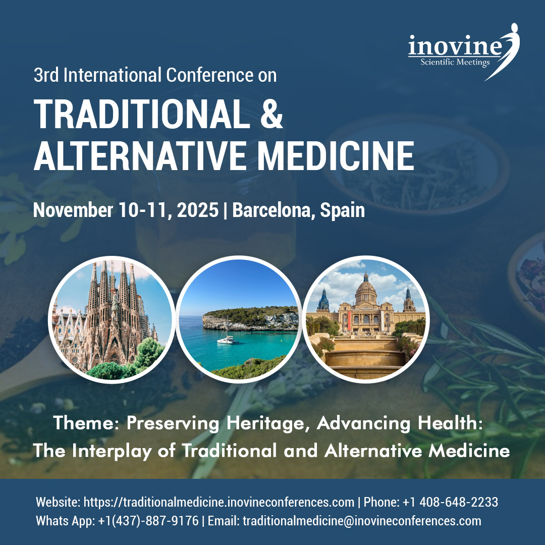 We are pleased to invite you to the “3rd International Conference on Traditional & Alternative Medicine” set to take place on June November 10-11, 2025, in Barcelona, Spain. The conference will emphasize the theme: “Preserving Heritage, Advancing Health: The Interplay of Traditional and Alternative Medicine” Traditional and Alternative medicine 2025 play crucial roles in the future of global healthcare. ICTMM 2025 will showcase groundbreaking research on blending ancient healing practices with modern innovations, emphasizing holistic health, scientifically backed traditional remedies, and the growing significance of alternative therapies in today’s medical landscape. This conference will serve as a platform for insightful discussions, foster collaborations, and pave the way for advancements in integrative medicine. For More details visit our website: https://traditionalmedicinecongress.com/ Book your slot: https://traditionalmedicinecongress.com/registration.php If you have any queries please contact us |