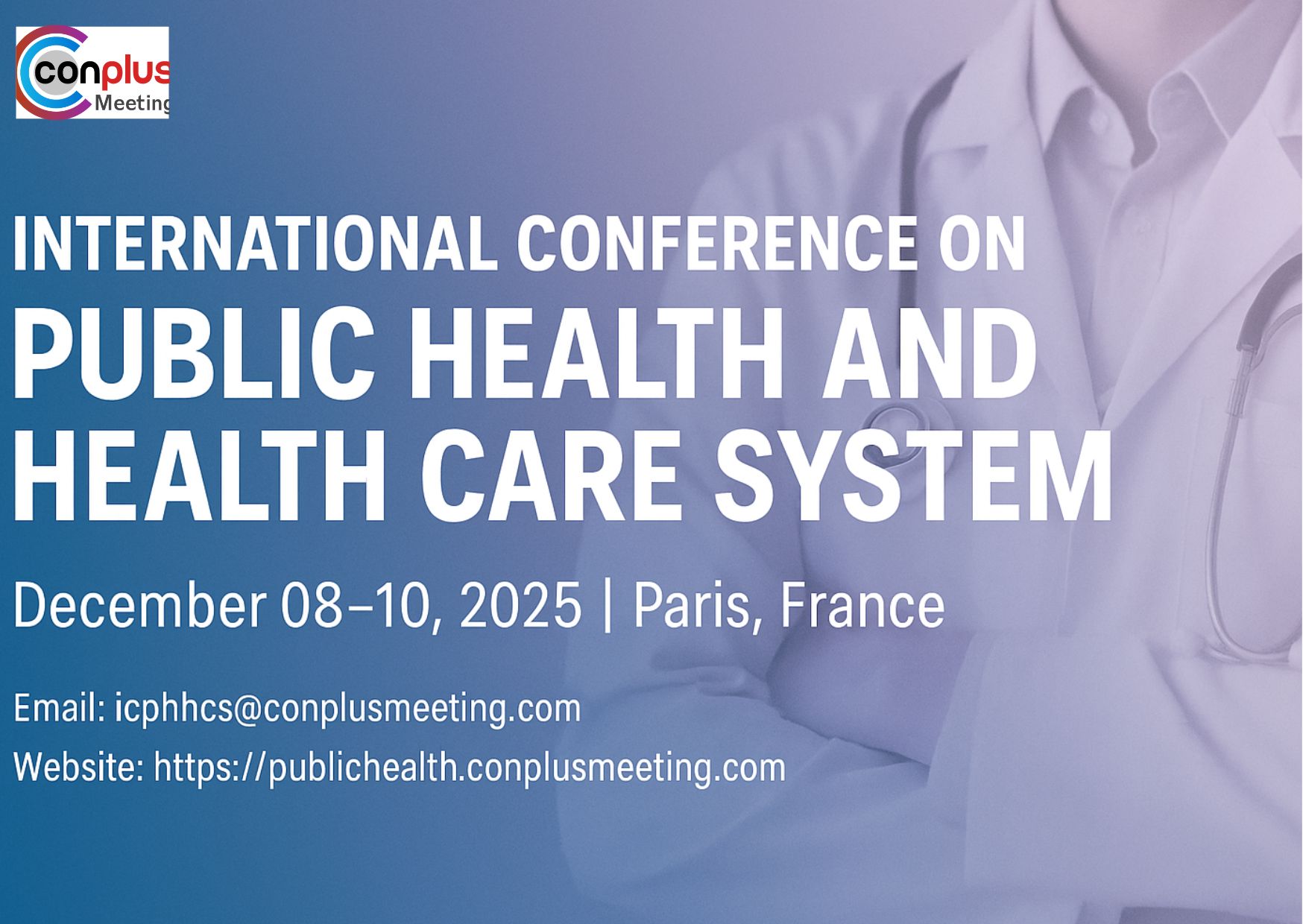 The International Conference on Public Health and Health Care System (ICPHHCS2025), organized by Conplus Meetings, will be held from December 08-10, 2025 in Paris, France. This prestigious conference provides a premier platform for public health professionals, policymakers, researchers and healthcare practitioners to engage in discussions on the latest advancements, share critical insights and explore collaborative approaches to addressing complex health challenges.